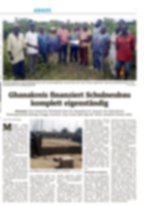 Der Ghana-Kreis hat zwischenzeitlich eine weitere Brunnenbohrung in Auftrag gegeben, die Vorarbeiten sind abgeschlossen. Nach Ende der Regenzeit wird die Brunnenbohrung erfolgen, z. Zt. ist es nicht möglich, mit dem erforderlichen schweren Gerät die vorgesehene Bohrstelle anzufahren. Die Kosten hierfür belaufen sich auf 4.000 €. Sie werden aus Spendengeldern übernommen.