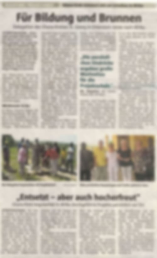 Brigitta Malyszek, Ida und Werner Nabbefeld sowie Marianne Jessing. Anlass der Reise war u. a., lieb gewonnene Kontakte zu pflegen, aber auch die Projektarbeit zu vertiefen. Ein umfangreiches Programm erwartete sie, das durch Father Aloysius (der Ottensteiner Gemeinde bekannt) und Father Linus, dem neuen Pfarrer der Gemeinde, erarbeitet worden war: Gespräche mit Bischof Bemile, der Direktorin der Schulbehörde, dem Assemble-Man sowie dem Chief-Administrator der Regional-Regierung wurden geführt (der Besuch beim Regional-Minister fiel aus, weil dieser kurzfristig nach Accra eingeladen worden war, um am Empfang für Barack Obama teilzunehmen!)